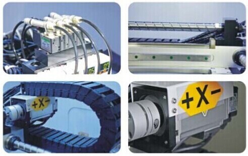 2) The transmission of the X and Y shafts uses the imported high-precision ground lead screws and linear guide rails in combination with the Japan Panasonic servo drive ensuring the high precision and high speed of mounting.